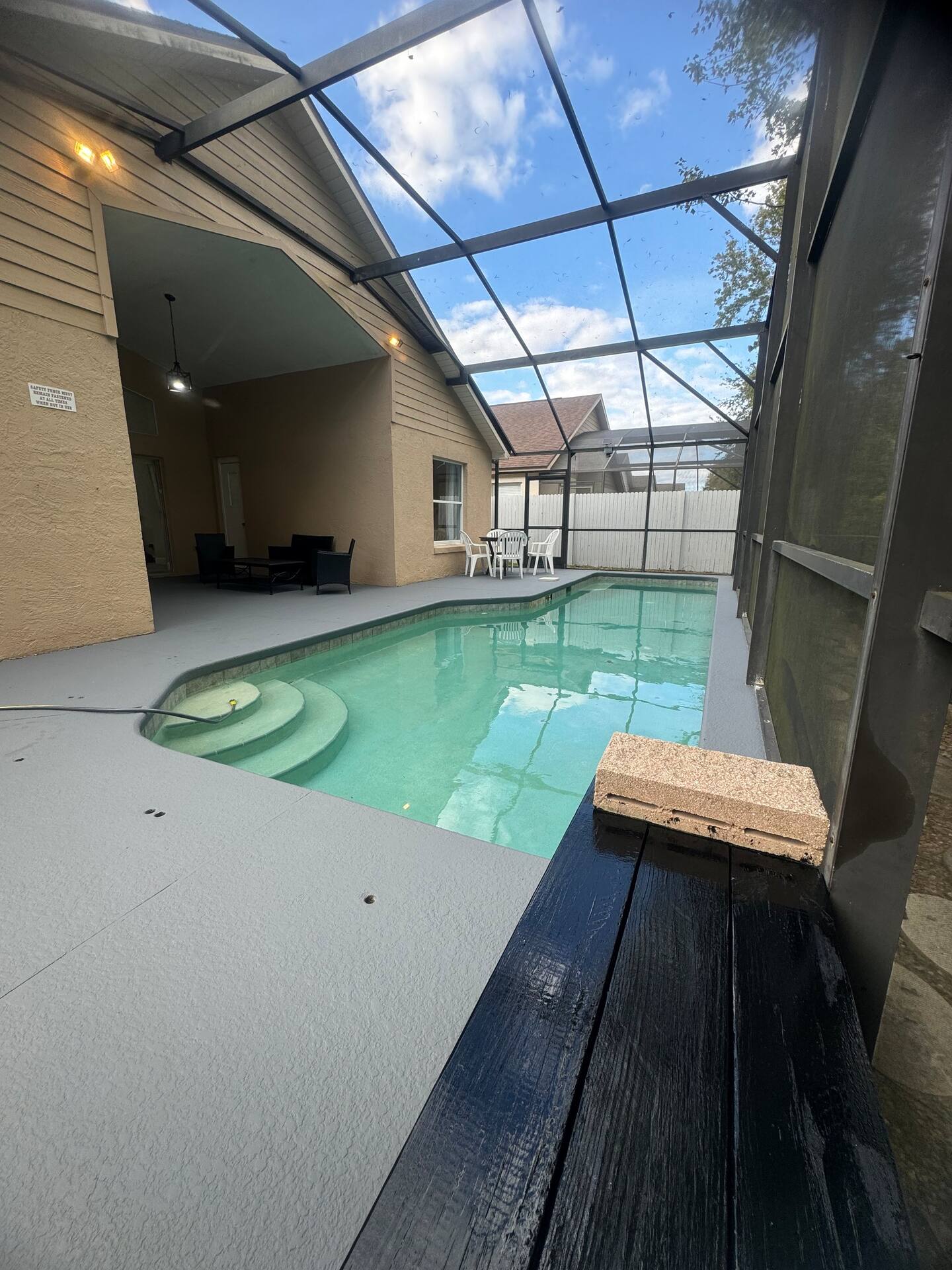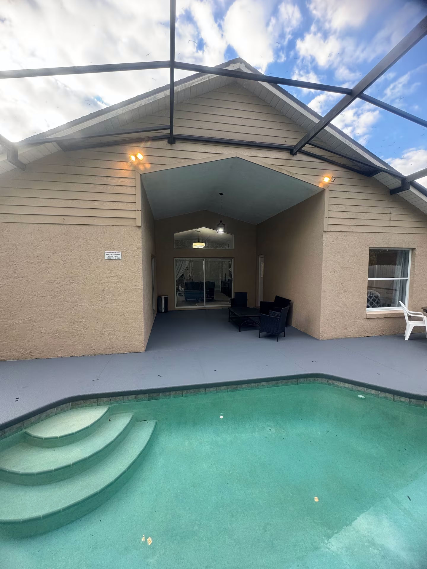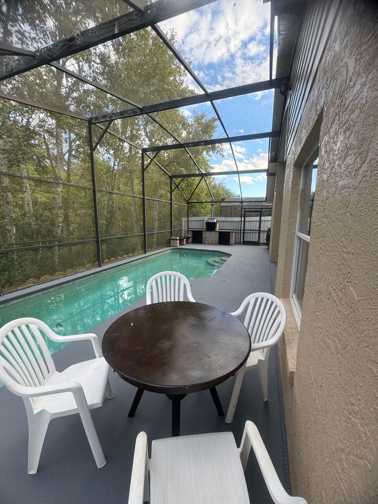 A área externa é um espetáculo à parte. Ao sair para o quintal, você será recebido por uma piscina privativa e uma cozinha de verão, perfeitas para aproveitar ao máximo o clima da Flórida. Desfrute de mergulhos matinais, tardes tranquilas ao sol e jantares ao ar livre com um delicioso churrasco ao entardecer. É o lugar ideal para descansar depois de um dia nos parques, relaxando sob as estrelas em um ambiente encantador.